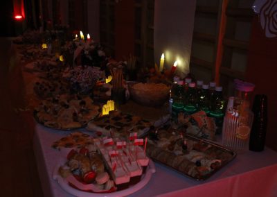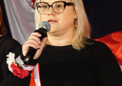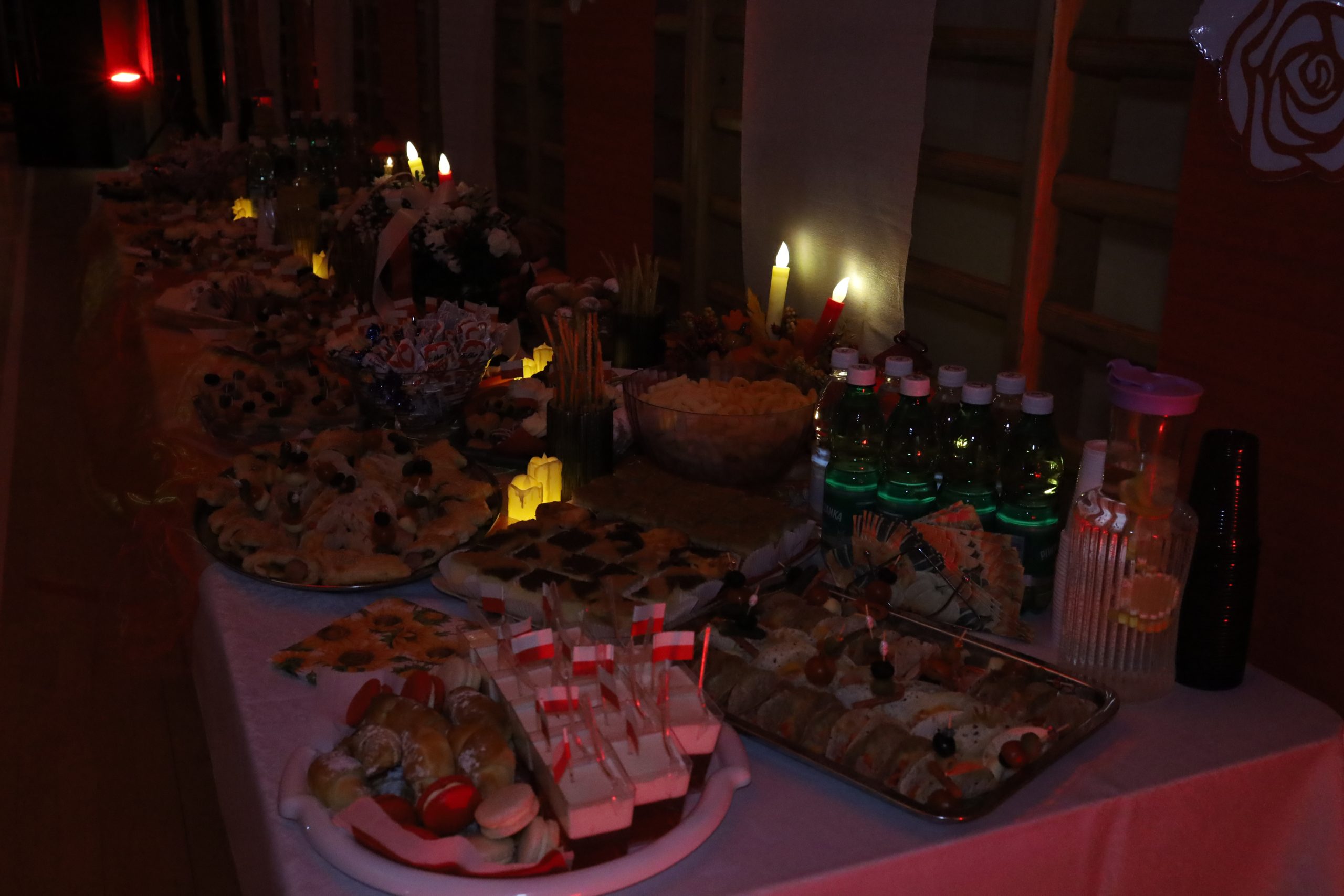 Serdeczne podziękowania należą się również panu Dominikowi Gruszczyńskiemu i pracownikom jego firmy MAGIC SOUND za profesjonalne nagłośnienie i oświetlenie sceny, uczniom z grupy medialnej za uwiecznienie tych pięknych chwil, a także Właścicielom piekarni TĘGOBORZE i NIKA za słodkości i poczęstunek. Wreszcie – na koniec choć nie mniej ważnym – pracownikom JCE – panom konserwatorom, a także panu Markowi Szymańskiemu za ustawienie sceny, pani Halinie Krawczyk, Bernadecie Kowalik i paniom wychowawczyniom świetlicy za wykonanie pięknej dekoracji, pani Gosi, pani Ziucie i pani Sabinie za przygotowanie stołu z poczęstunkiem. Dzięki pracy tych wszystkich osób, nasze V Patriotyczne Śpiewanie zapamiętamy na długo.