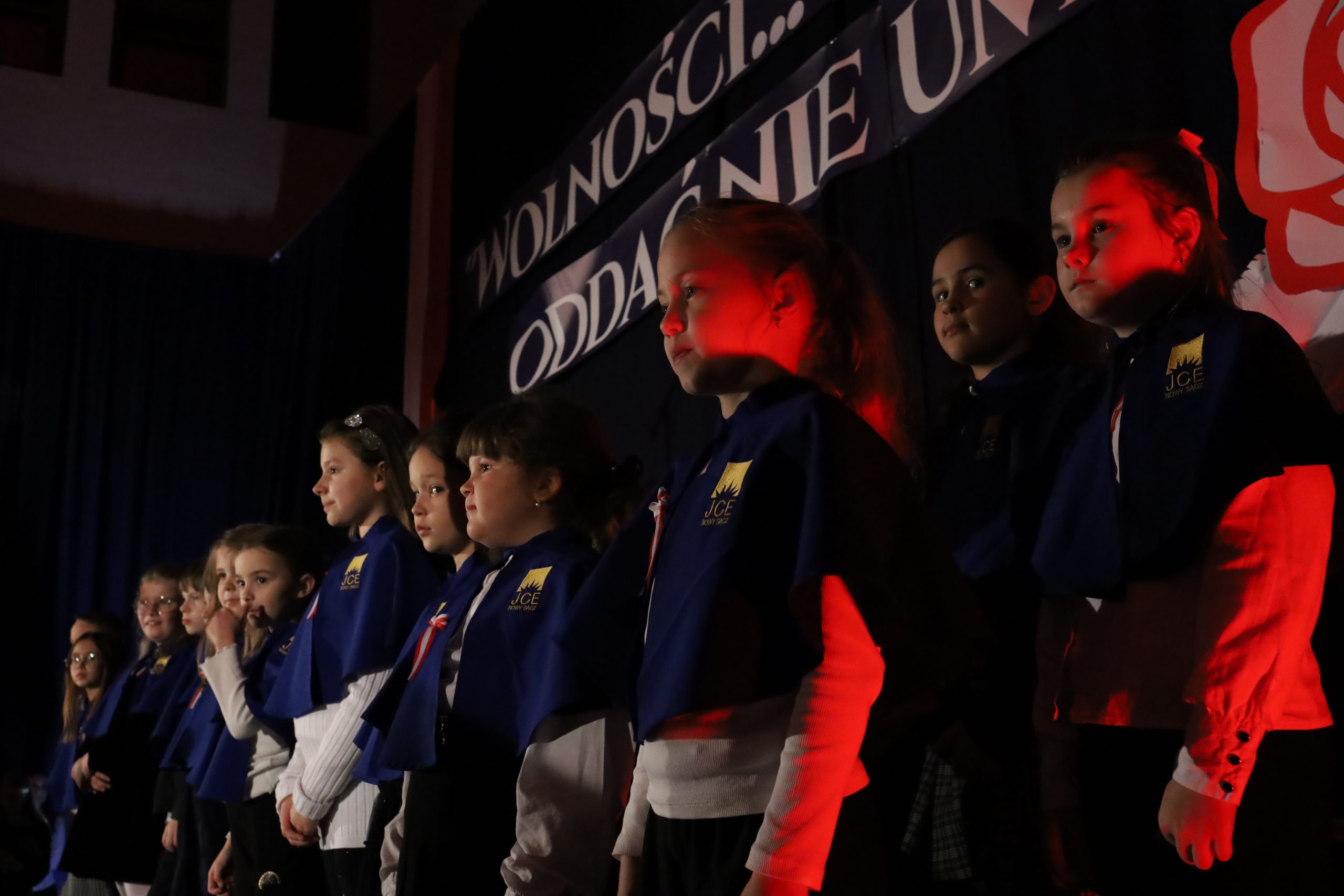 Dwudziestego listopada wieczorem, już po raz piąty, sala gimnastyczna JCE zamieniła się w scenę dla wielu wzruszeń i refleksji. Już piąty raz spotkaliśmy się – uczniowie, rodzice i rodziny, a także Dyrekcja, o. Delegat i pracownicy JCE, żeby wspólnie świętować i dać wyraz naszemu patriotyzmowi.