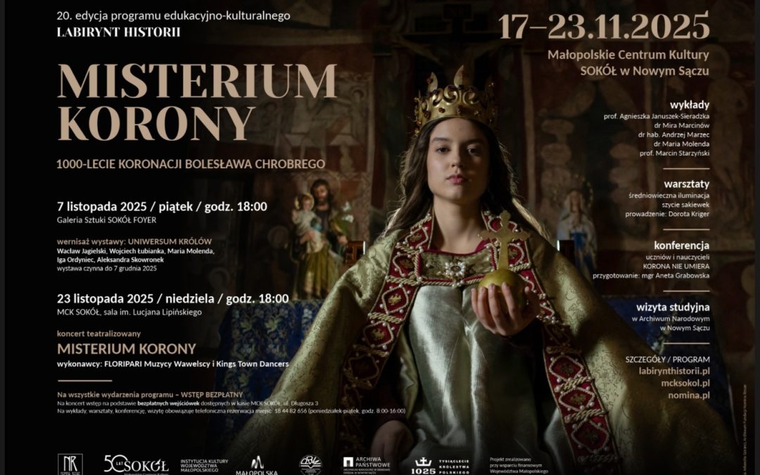 „Labirynt Historii to cykl wydarzeń o charakterze edukacyjno-kulturalnym, poruszających ciekawe, niejednokrotne kontrowersyjne tematy związane z historią Polski i jej sąsiadów, wewnętrznych stosunków w naszym państwie, relacji międzyludzkich w tym społecznych i politycznych. Tegoroczna edycja, zatytułowana „Misterium korony”, nawiązuje do 1000-lecia koronacji Bolesława Chrobrego – wydarzenia symbolicznego dla narodzin polskiej państwowości. To moment, który pozwala przyjrzeć się władzy w wymiarze duchowym i politycznym, odkryć jej rytuały, znaczenia i dziedzictwo, jakie pozostawiła w kulturze europejskiej.” (źródło: https://mcksokol.pl/cykl/labirynt-historii)